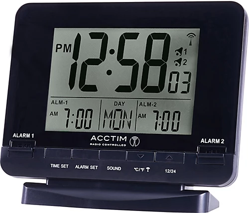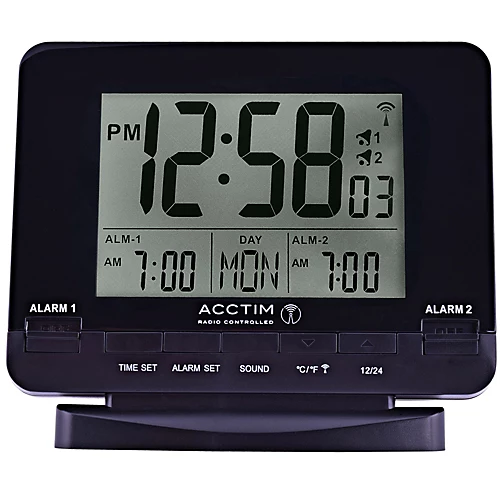 Delaware is radio controlled alarm clock that makes an easy time of things, thanks to its automatic setup function. The calendar, day and indoor temperature function will keep you informed with aplomb, thanks to its easy-to-read display. Delaware also features a dual crescendo alarm with snooze and green back-light.