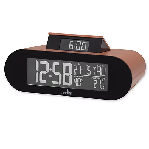 Packed with technology, Kian doesn’t just look the part, it delivers on everything you can want from an alarm and more. This great LCD clock has a fun pop-up display for turning your alarm on and off. Set and snooze your crescendo alarm with the touch sensor buttons, or turn it off by pushing the display down. The reverse light technology gives a HD display of the time, humidity, temperature in C or F, and the date and day in seven different languages. Très bien.