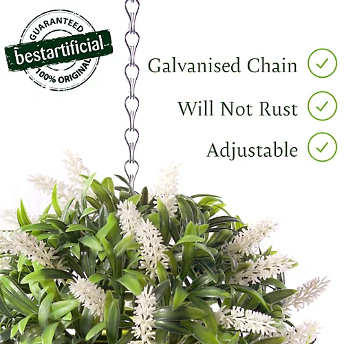 Our White Lavender ball is the perfect way to add a burst of colour to your home or business. They accentuate any building and are maintenance free. They arrive fully assembled with a galvanised hanging chain attached to them so that they are ready for display straight from the box.