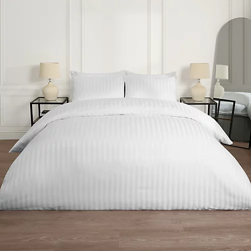 This luxurious Brentfords satin stripe duvet set will unlock the secret to a good nights sleep whilst providing a unique design and feel – ideal for any bedroom achieved by its striking colours, a perfect way to give your room a fresh look. This duvet set is made from 100% polyester easy care soft touch microfibre making it soft and comfortable. It is fully reversible and includes a luxury oxford design pillow case. Available in the following sizes:- Single: Fits W135cm x L200cm or W54″ x L78″ Single Bed (Includes duvet cover & 1 pillow case) Double: Fits W200cm x L200cm or W78″ x L78″ Double Bed (Includes duvet cover & 2 pillow cases) King: Fits W230cm x L220cm King Size Bed (Includes duvet cover & 2 pillow cases) Super King: Fits W260cm x L220cm Super King Size Bed (Includes duvet cover & 2 pillow cases) Size: This range is available in single double, king and superking size. Colour/Design: Contrast satin stripe available in black, cream, duck egg blue, mauve purple, mink, silver, vintage pink and white. Black, cream and duck egg available with a fitted sheet. Choose from drop down menu. Please note that this is not a comforter. Material: 100% Polyester soft touch microfibre. Includes: Duvet Cover with pillow case(s). Washing Instructions: Machine washable at 40°C, tumble dry friendly – easy care. Brand: Brentfords – Established in 1952, celebrating 65 years of providing quality bedding.