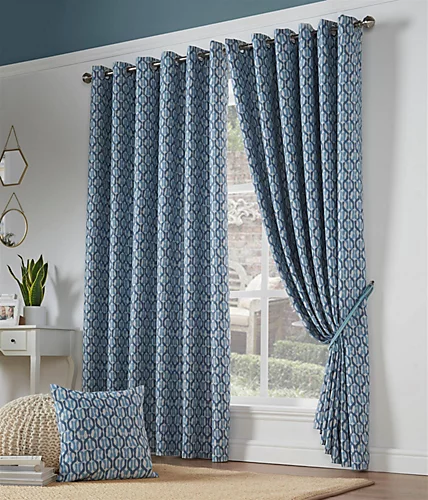 Printed satin feel curtains that will block out 95% light. Designed with a triple weave fabric so do not require linings. Finished with an eyelet ring top heading.