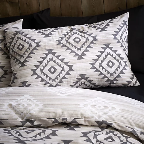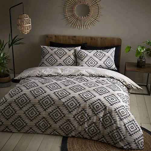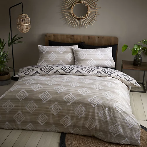 An eye-catching design featuring Aztec style geometrics on a soft neutral backdrop. Fully reversible, this bedlinen offers two global looks in one. Created from easy-care and durable polycotton fabric perfect for everyday use.