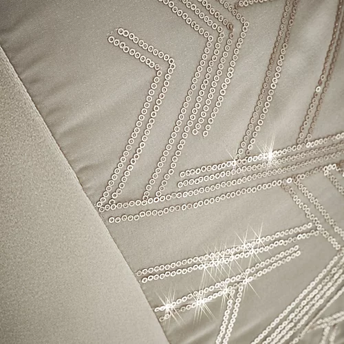 Art Deco inspired, shimmering panels of sparkling sequins decorate this soft velvet touch pillowshams in a glamorous and elegant champagne colour.