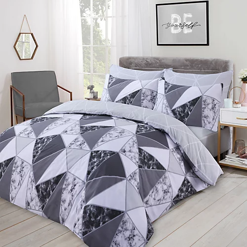 - Give your bedroom a fresh modern look with this marble geometric reversible quilt duvet cover with pillow case bedding linen set