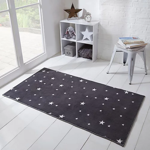 - Dreamscene soft star printed carpet rug, with a non-slip pvc dot backing, which is ready to unroll for your childrens room and provide the finishing touch