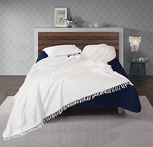 This extravagant, super-king-size, ivory throw from our batten range, is manufactured with pure cotton, to provide plenty of warmth and good looks. Versatile with a delicate design it can be used in modern and traditional decors. Machine washable it protects your furniture from dust, dirt, animal hair and stains.