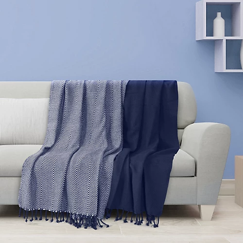 To curl up on the couch or in bed, use our really cosy chevron throw. It works well as a layering item all throughout the house. Depending on how you choose to decorate, 125 x 150 cm throws, which are available in packs of two, are the ideal size for either a single or double bed. The EHC cotton throw is a genuine crowd pleaser thanks to its traditional chevron weaving, and its fringed edges give it a distinctive appearance. Perfect for layering and adding texture to your house, or for cold summer evenings.