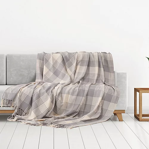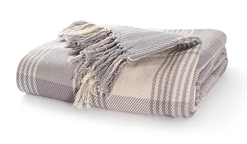 - Pattern – Woven with a mixture of cool grey and natural color used to highlight the traditional tartan pattern and finished with tactile fringes on both edges.