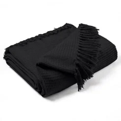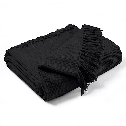 - Material – Made from pure cotton, designed with textured waffle patterns and finished with matching fringes.