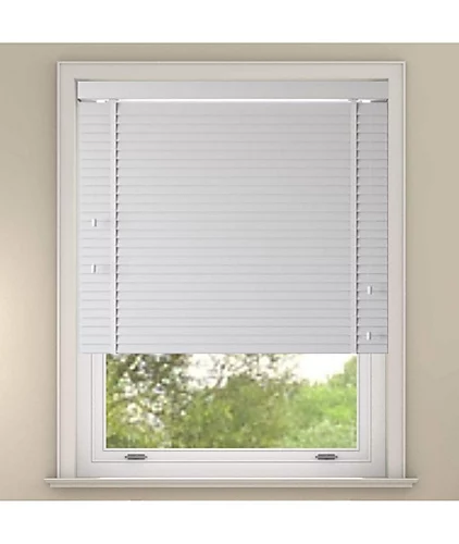 These stylish alternative to the old fashion venetian blinds offer 50mm slat with an embossed wood grain effect and use the decadent ribbon ladder. The easy fit system work for both inside our outside the recess. These blinds contain a valance with full return for the outside recess, to complete the look. The blind works off a two cord system, one for moving the blind up and down and the other is use to adjust your level of privacy The blind come in three finishes white, light grey and slate The pack includes the complete blind, valance, adjustable valance hooks clips, metal wall supports, screws and a child safety cleat