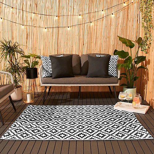This soft and durable outdoor rug from our Dreamscene Collection will add a luxurious, exquisite look to any garden patio or decking. The Non-slip material backing and water resistant coating means this is non-skid and makes for practical use, all year round. The trendy geometric design will add a touch of colour and depth to your outdoor space.