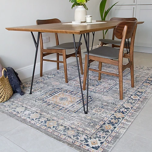 Introducing our stunning purposefully distressed zero pile rugs, the perfect addition to any modern or bohemian-inspired home. This range features bold and intricate geometric tribal patterns as well as traditional and vintage inspired medallions. Crafted with zero pile, they are both durable and easy to maintain, making them ideal for high-traffic areas such as living rooms, dining rooms, and entryways. The distressed finish adds a touch of vintage charm, while the modern colour palette is fresh and on-trend. Perfect to anchor any room and create a cosy and inviting atmosphere.