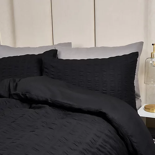 - Highams luxury classic seersucker duvet cover with pillowcase, puckering polycotton weave bedding set.