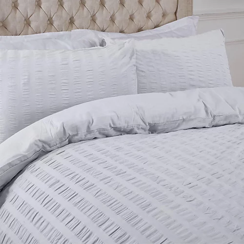 - Highams luxury classic seersucker duvet cover with pillowcase, puckering polycotton weave bedding set.