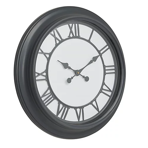 Material: Gl, Metal. 2 Hands, Analogue. Design: Monochrome. Height: 59cm. Width: 59cm. Length: 6cm. Battery Type: AA. Please Note: Batteries Not Included. Handcrafted. Hanging Hook.