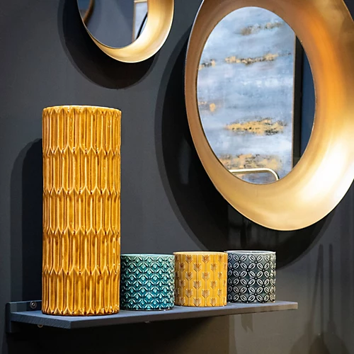 Material: Ceramic. Finish: Textured. Height: 13cm. Length: 13cm. Width: 13cm. Design: Patterned. Please Note: Not Suitable For Outdoor Use.