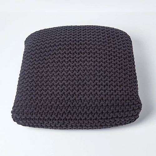 Homescapes has by far the largest range of knitted pouffes and cubes in the UK and possibly in Europe. A selection of 5 contemporary colours and two different shapes allows you a vast choice not available anywhere. These knit pouffes and knitted large floor cushions have been hand made from 100% sturdy cotton and filled with robust polystyrene beads. The filling ensures that the poufs do not lose their shape while sitting on them. They are very colourful, fashionable and true all-rounders. They can, for example, be used as make shift stools and occasional seats for visitors, decorative floor cushions or comfortable footstools. They would look equally at home in a Nordic setting along with the rest of your warm soft furnishings, or in a sleek modern setting providing a splash of colour.