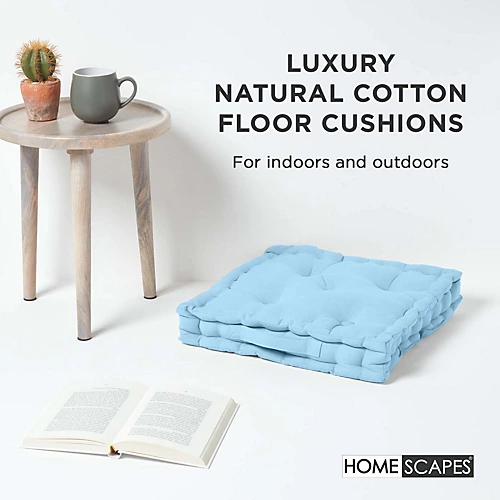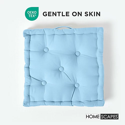 Homescapes square floor cushions are manufactured with 100% cotton fabric and filled with high quality resilient fibres. These cushions coordinate beautifully with the other Homescapes soft furnishings like throws, cushion covers, kitchen textiles and curtains in the same or similar designs and fabrics. The selection is huge and the quality is top class. These cushions can be used as chair pads, seat pads, dining booster cushions, children cushions and garden seat cushions. Since the fabric is not waterproof, please do not leave them outdoors. The range includes a large selection of plain colours, thick and thin stripes, beautiful floral and retro prints and also classic woven tartan checks.