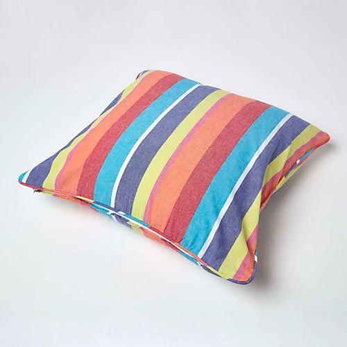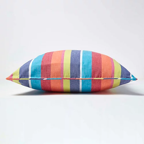 These checks and stripes cushion covers in 100% cotton are hand woven with high quality dyed yarn. Yarn dyed hand woven fabrics are usually very expensive but Homescapes being manufacturer can bring the same to you at a very reasonable price for the very high quality soft furnishings. Coordinating soft furnishings and kitchen textiles are available in these designs. You can also buy fabrics by the meter and make your own soft furnishings.