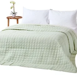 - 200 x 200 cm, double bed size reversible bedspread or throw. Sage Green & Cream.