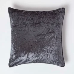 - Cushion cover from Homescapes available in two sizes (45 x 45 cm and 60 x 60 cm) woven from on-trend crushed velvet. Colour: Dark Grey.
