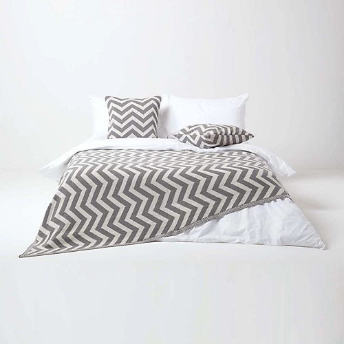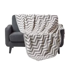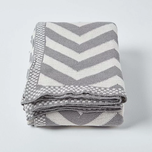 - Super soft grey and off-white knitted throw with a geometric zigzag design. Size: 150 x 200 cm. Colour: Grey.