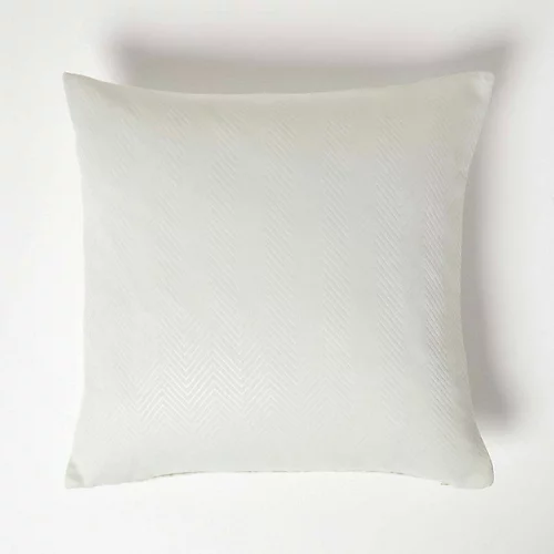 - Herringbone design cream decorative cushion cover. Geometric style embossed chevron pattern cushion cover measures 45 x 45 cm (18 x 18 inches).