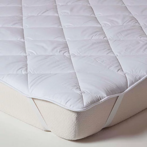 Indulgent, super thick mattress topper with a generous 500 GSM filling, this luxury topper will add an extra layer of support and cushion to your mattress as you drift off to sleep in cloud-like comfort. Encased within super soft 200 thread count 100% cotton, this premium quality mattress topper is unlike any other, is the ultimate in luxury and transforming your sleep. A hypoallergenic and anti-dust mite mattress topper, suitable for all, including allergy sufferers. This indulgent topper is filled with a fluffy and bounce back polyfibre filling that will not go flat and remain thick and bouncy over time. Easy to care for Homescapes’ super fill mattress topper is easy to keep clean and can be washed at home. Expertly crafted our bedding is OEKO-TEX certified, with all fibres and fillings tested to ensure they are free from toxins and chemicals. Suitable for deep and extra deep mattresses, this topper features 4 thick and strong corner straps, keeping the topper secure and in place as you move in bed. Exclusively designed by Homescapes our mattress topper and protector collection includes all you need to protect your bedding and help you get the best night’s sleep. The range includes waterproof terry towelling mattress protectors, fleece underblankets and quilted protectors available in UK, European and cot bed sizes and pillow protectors available in standard, king size and European sizes.