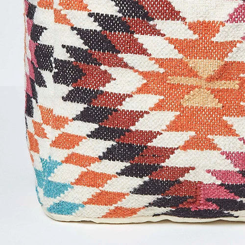 Traditionally handwoven kilim pouffe from Homescapes’ exclusive kilim collection. These durable, hardwearing footstools are woven from 100% cotton and 100% wool that create tapestry style decorative design, perfect for everyday use. Featuring a traditional textured design that echoes Indian and Tribal patterns, these striking and colourful pouffes are sure to make a statement in any home. Generously filled with polyester beads, that are encased within thick, 100% cotton to prevent filling leakage, these versatile beanbag style pouffes are both practical and comfy.