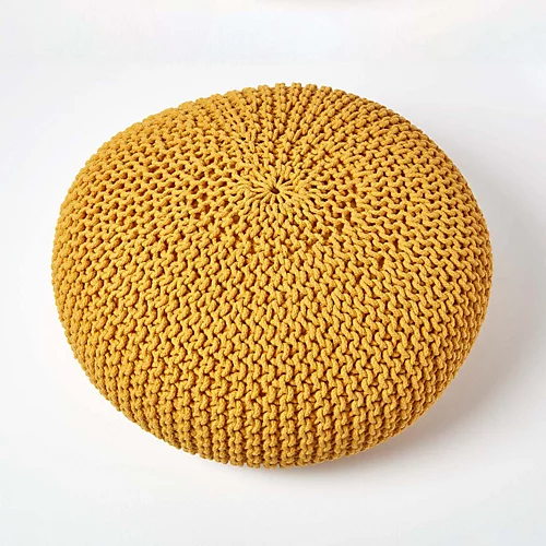 Homescapes has by far the largest range of knitted pouffes and cubes in the UK and possibly in Europe. A selection of 5 contemporary colours and two different shapes allows you a vast choice not available anywhere. These knit pouffes and knitted large floor cushions have been hand made from 100% sturdy cotton and filled with robust polystyrene beads. The filling ensures that the poufs do not lose their shape while sitting on them. They are very colourful, fashionable and true all-rounders. They can, for example, be used as make shift stools and occasional seats for visitors, decorative floor cushions or comfortable footstools. They would look equally at home in a Nordic setting along with the rest of your warm soft furnishings, or in a sleek modern setting providing a splash of colour.