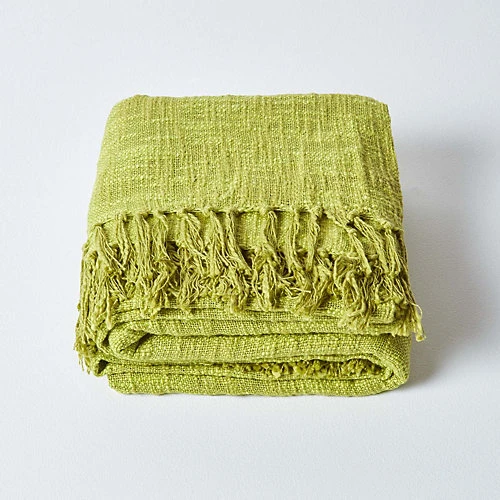 Homescapes’ Nirvana Handwoven 100% Pure Cotton Throw for Bed or Sofa Brighten up your rooms with one of Homescapes’ new range of Nirvana throws! These handwoven bed or sofa covers made of 100% cotton are carefully manufactued on traditional hand looms from India using a special yarn to create a decorative slub pattern. This pattern flows naturally and makes the spreads look comfortable and snugly. Thanks to the handwork and the slub yarn used, each throw has its own unique pattern and different light and darker colour shades. Each cover is finished with handknotted tassels that create an oriental touch and make these throws a decorative eyecatcher.