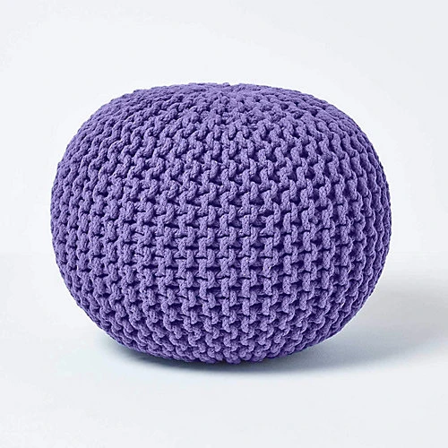 Homescapes has by far the largest range of knitted pouffe and cubes in the UK and possibly in Europe. A selection of 10 colours and two different shapes allows you a vast choice not available anywhere. These knitted pouffe and knitted cubes have been hand knitted in 100% cotton and filled with polystyrene beads. They are very colourful and fashionable. These are used for occasional seating, footstool or even as an end table. They would look equally at home in a Nordic setting along with the rest of your warm soft furnishings, or in a sleek modern setting providing a splash of colours.