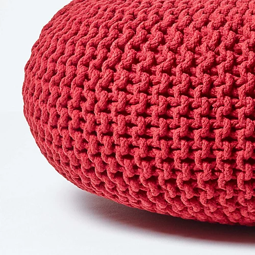 Homescapes has by far the largest range of knitted pouffes and cubes in the UK and possibly in Europe. A selection of 5 contemporary colours and two different shapes allows you a vast choice not available anywhere. These knit pouffes and knitted large floor cushions have been hand made from 100% sturdy cotton and filled with robust polystyrene beads. The filling ensures that the poufs do not lose their shape while sitting on them. They are very colourful, fashionable and true all-rounders. They can, for example, be used as make shift stools and occasional seats for visitors, decorative floor cushions or comfortable footstools. They would look equally at home in a Nordic setting along with the rest of your warm soft furnishings, or in a sleek modern setting providing a splash of colour.