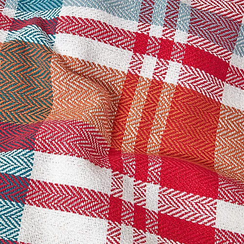 For use in the bedroom or living room, the Falun throw from Homescapes comes in a bright tartan design made up of green, turquoise, mauve and brown on a white background. This brightly coloured throw features a subtle chevron pattern for a contemporary twist on classic tartan designs. Woven from 100% cotton, this natural fabric is soft to the touch and incredibly durable, so can enjoy this throw for years to come. It is finished with tasselled fringing to give a laid back, relaxed look, and you can use this throw anywhere in your home. Fold it over the end of your bed for some added style and an extra layer of warmth.