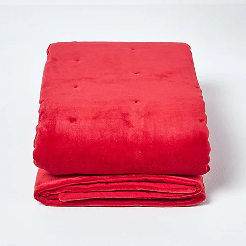 - Super soft and cosy 100% cotton velvet with quilted polyfibre filling. Size: 125 x 150 cm. Colour: Red.
