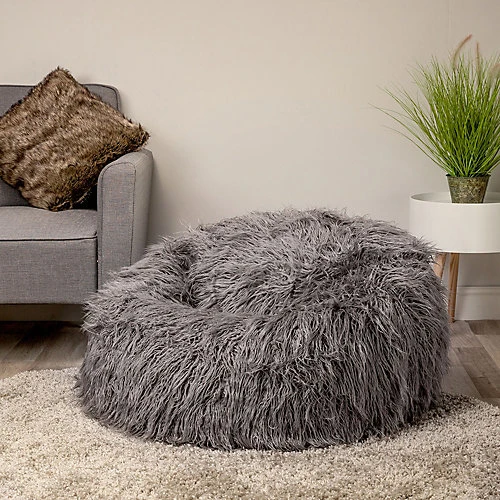 - Classic shaped, luxury faux fur bean bag, designed by icon