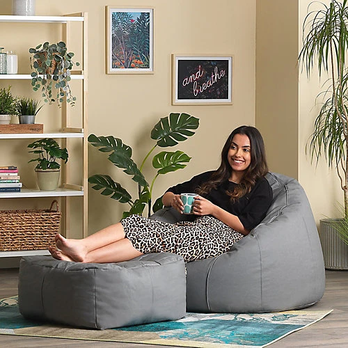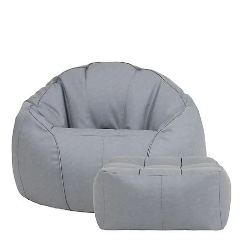 - Relaxed “Riviera”, casual faux leather bean bag chair and pouffe, designed by icon