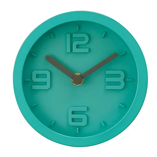 This wall clock has a bright cyan face that is adorned with raised batons and numerals in a similar shade.