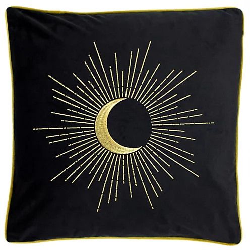 Add chic style to your interior with this gold embroidered soft velvet cushion. With a beautifully adorned design of an eclipse setting paired with its contrast-coloured velvet piped edges – this will sit perfectly upon any chair or bed.