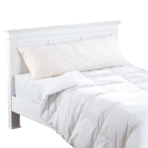 Our duck feather bolster pillows fit the width of most standard mattress sizes. The filling is 100% duck feather with a pure cotton fabric casing for a luxury feel and excellent support when used in bed.