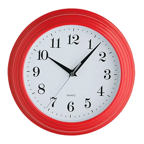 This wall clock features pointed hands, the black minute and hour hands contrasting with their silver second hand. The white face makes the curling black numbers easy to read, with vertical lines denoting the minutes around the circumference. The durable plastic frame features a concertina design, its ridges adding depth to this stylish accent piece.
