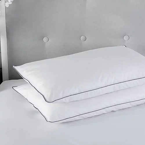 Our microfibre feels like down pillow pair is filled with bouncy microfibre to make it feel just like down complemented with a silk like outer and piped all round to give it that luxury hotel feel.