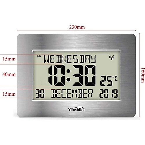 Large Jumbo Big Digit LCD Radio Controlled Digital Wall Clock, with Indoor Temperature and Humidity Display Popular for use at Home or Work, Perfect for Public Buildings, Warehouses, Shops, Restaurants, Factories, Banks, School, Indoor Sports Halls and Offices etc. where consistently accurate time is needed ¬â€