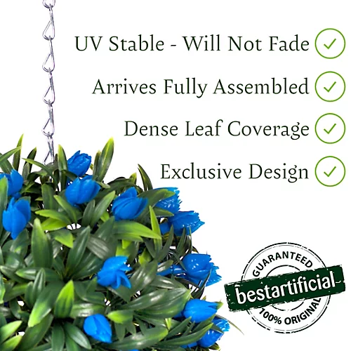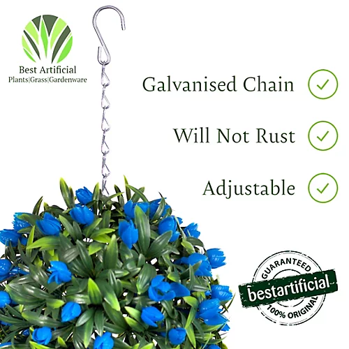 Our Blue Tulip ball is the perfect way to add a burst of colour to your home or business. They accentuate any building and are maintenance free. They arrive fully assembled with a galvanised hanging chain attached to them so that they are ready for display straight from the box.