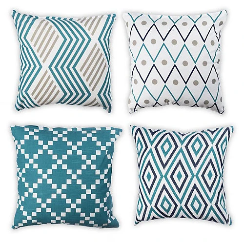 Penguin Home 100% Cotton Tessellated Double Sided Square Cushion Covers with Invisible Zipper 45cm x 45cm (18″” x 18”) (Set of 4 – Turquoise, Grey and Navy Colours), 45×45 Cm”, 3756