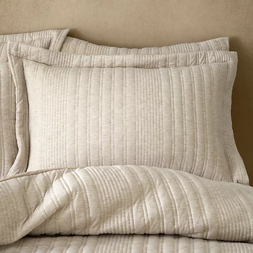 Add a relaxed comfort to your room with soft to touch Jersey. Featuring subtle linear quilting in muted natural tones for a calming bedroom retreat.