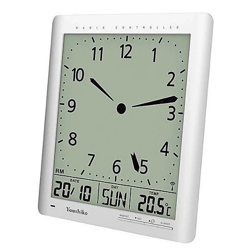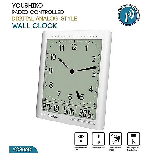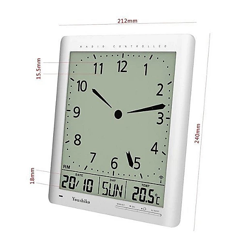 Digital Analog – Style Wall Clock, Large LCD Radio controlled will always show the correct time as it is constantly receiving the¬† ( MSF – UK Version )¬† atomic clock radio timing signal