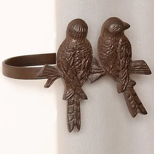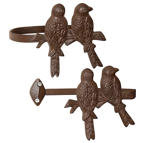 This set of two rustic bird curtain ties makes the ideal accessory for a country style home. This set of cast iron curtain tie backs feature decorative perched bird designs and can be easily attached to any wall with two screws.