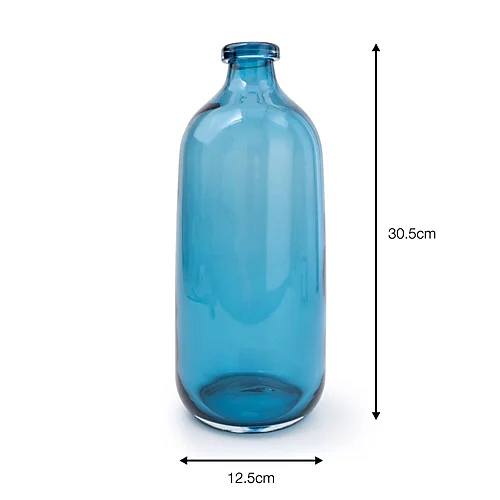 At 30.5cm high, this stunning bottle-shaped glass vase will be an eye-catching addition to any room in your home. In a vibrant blue colour, this vase will contrast beautifully with any interior scheme.