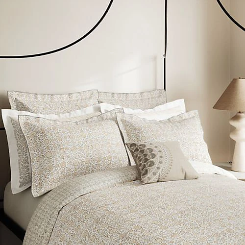 Based on a south Indian cottage design from the V&A’s archive of prints, the fanciful flower head and leaf pattern found on this V&A Kerala Oxford Pillowcase will certainly brighten up your bedroom. On the reverse of this alluring Oxford pillowcase is a coordinating print scattered with small scale flowers and leaves, in slate grey tones. Printed on 200 thread count, 100% BCI cotton with fine piping detail to all sides. Matching duvet covers and cushion in the Kerala collection are available separately for a coordinated look. The V&A Kerala Oxford pillowcase measures 74cm x 48cm x 1cm and is machine washable.
